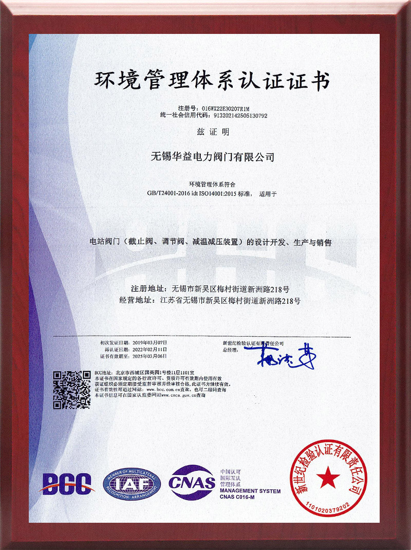 環(huán)境管理體系認(rèn)證證書
