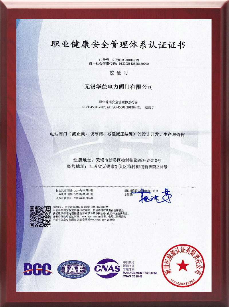 職業(yè)健康安全管理體系認(rèn)證證書